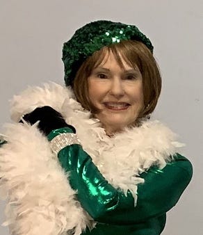 Rosemarie Ballard, 81, is a super entertainer, emcee, actor, dancer, singer, mime, clown, speaker, teacher and writer. Rosemarie is the founder and director of Imagination Express All Aboard since 1998. Her book “Silence is Golden” is a best seller. Rosemarie’s goal is to keep the art of Mime alive. She has been with the Rhinestone Grannies since 2018. Rosemarie has 19 grandchildren and four great grands.